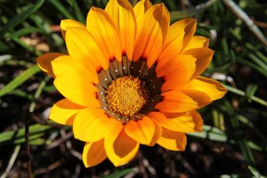| Keywords: outdoor flower plant Gazania krebsiana Less. is one of some 19 species of Gazania that are exclusively African and predominantly South African - only Gazania krebsiana subsp. serrulata (DC.) Roessler ventures northwards from the Transvaal into Tanzania. This ground-hugging grassland species is one of the first plants to flower in spring, appearing in profusion as small clumps of yellow or white flowers between low grass tussocks or burnt stubble, or as leafless single flowers seemingly stuck into the soil. Flowering lasts for only a few weeks after the first rains. The buttercup-yellow rays often occur in forms having dark spots at the base. The showy flowers open only in strong sunlight, closing with fading light and re-opening the following day. This plant is perennial and grows from a woody rootstock. The leaves are tufted and linear in shape, white-felted on the underside, and exuding a milky latex when damaged. First described by Christian Friedrich Lessing in 1832, 3 subspecies are recognised: G. krebsiana subsp. arctotoides, G. krebsiana subsp. krebsiana and G. krebsiana subsp. serrulata. The Biedouwvallei and Pakhuis Pass in the Cape present striking displays of blood-red G. krebsiana subsp. arctotoides after good autumn rains, this subspecies occurring widely through the Cape, Free State, Natal, Lesotho, and in Namibia. Gazanias have become popular garden subjects, especially in Europe because of their hardiness, and horticultural breeding has led to numerous cultivars with large flower-heads and a variety of colours. Decoctions and infusions of the plant are used as analgesics (pain relief) by Bantu tribes. en.wikipedia.org/wiki/Gazania_krebsiana Gazania krebsiana Less. is one of some 19 species of Gazania that are exclusively African and predominantly South African - only Gazania krebsiana subsp. serrulata (DC.) Roessler ventures northwards from the Transvaal into Tanzania. This ground-hugging grassland species is one of the first plants to flower in spring, appearing in profusion as small clumps of yellow or white flowers between low grass tussocks or burnt stubble, or as leafless single flowers seemingly stuck into the soil. Flowering lasts for only a few weeks after the first rains. The buttercup-yellow rays often occur in forms having dark spots at the base. The showy flowers open only in strong sunlight, closing with fading light and re-opening the following day. This plant is perennial and grows from a woody rootstock. The leaves are tufted and linear in shape, white-felted on the underside, and exuding a milky latex when damaged. First described by Christian Friedrich Lessing in 1832, 3 subspecies are recognised: G. krebsiana subsp. arctotoides, G. krebsiana subsp. krebsiana and G. krebsiana subsp. serrulata. The Biedouwvallei and Pakhuis Pass in the Cape present striking displays of blood-red G. krebsiana subsp. arctotoides after good autumn rains, this subspecies occurring widely through the Cape, Free State, Natal, Lesotho, and in Namibia. Gazanias have become popular garden subjects, especially in Europe because of their hardiness, and horticultural breeding has led to numerous cultivars with large flower-heads and a variety of colours. Decoctions and infusions of the plant are used as analgesics (pain relief) by Bantu tribes. en.wikipedia.org/wiki/Gazania_krebsiana |