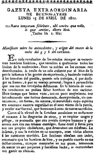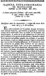 | Keywords: Gazeta-18110415.jpg es Gazeta extraordinaria del 15 de abril de 1811 acerca de la revolución de los orilleros Diario Gazeta Junta Grande Gregorio Funes 1811-04-15 PD-AR-Anonymous PD-1923 History of Argentina from Independence to the Constitution of 1853 Documents of Argentina |