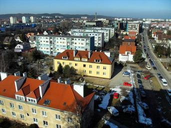 Keywords: gdansk poland buildings skyline urban city cities architecture street cars autos sky clouds rooftops outside