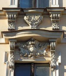 Keywords: Gdańska 63 Bydgoszcz f.jpg pl Kamienica ul Gdańska 63 w Bydgoszczy - detal own Pit1233 2010 Józef Święcicki tenement house in Bydgoszcz Cornices in Bydgoszcz Cc-zero