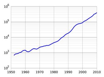 | Keywords: GDP of China in hundred million RMB-semilog.svg en GDP of China from 1952 to 2010 in hundred million Yuan Renminbi Data from http //www chinability com/GDP htm GDP growth in China 1952-2011 2014-12-15 own Delphi234 other versions File GDP of China in RMB-semilog svg in billion Yuan cc-zero Uploaded with UploadWizard Economy of the People's Republic of China GDP chart Diagrams labelled with numbers only | ||||