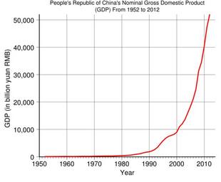| Keywords: GDP of China in RMB.svg translate yes en GDP of China in billion yuan RMB from 1952 to 2012 Data from http //www chinability com/GDP htm GDP growth in China 1952-2011 2014-12-14 own Delphi234 other versions File GDP of China in RMB-semilog svg semi-log File GDP of China in RMB-zh-hans svg zh-hans File GDP of China in RMB from 1952 to 2000 svg 1952 to 2000 Generated with Wikimedia SVG Chart 1 s Data wikitable style text-align right colspan 2 RMB billion yuan - Year GDP - 1952 67 9 - 1953 82 4 - 1954 85 9 - 1955 91 0 - 1956 102 8 - 1957 106 8 - 1958 130 7 - 1959 143 9 - 1960 145 7 - 1961 122 0 - 1962 114 9 - 1963 123 3 - 1964 145 4 - 1965 171 6 - 1966 186 8 - 1967 177 4 - 1968 172 3 - 1969 193 8 - 1970 225 3 - 1971 242 6 - 1972 251 8 - 1973 272 1 - 1974 279 0 - 1975 299 7 - 1976 294 4 - 1977 320 2 - 1978 362 4 - 1979 403 8 - 1980 451 8 - 1981 486 2 - 1982 529 5 - 1983 593 5 - 1984 717 1 - 1985 896 4 - 1986 1020 2 - 1987 1196 3 - 1988 1492 8 - 1989 1690 9 - 1990 1854 8 - 1991 2161 8 - 1992 2663 8 - 1993 3463 4 - 1994 4675 9 - 1995 5847 8 - 1996 6788 5 - 1997 7446 3 - 1998 7834 5 - 1999 8206 8 - 2000 8946 8 - 2001 10965 5 - 2002 12033 3 - 2003 13582 3 - 2004 15987 8 - 2005 18386 8 - 2006 21087 1 - 2007 24661 9 - 2008 31404 5 - 2009 34506 9 - 2010 40201 2 - 2011 47288 2 - 2012 51932 2 cc-zero Uploaded with UploadWizard Economy of the People's Republic of China |