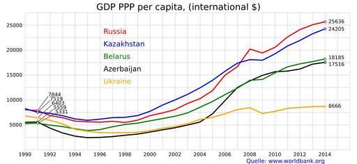 | Keywords: GDP PPP per capita CIS.svg translate yes en GDP per capita in PPP for Russia Kazakhstan Azerbaijan Belarus Ukraine Data source Worldbank de Bruttoinlandsprodukt kaufkraftbereinigt pro Kopf für Russland Kasachstan Azerbaidschan Belarus Ukraine Datenquelle Worldbank ru ВВП на душу населения по ППС ст ан Россия Казахстан Бела усь Азе байджан Ук аина Источник данных Всеми ный банк 2014-07-12 19 13 15 own Nikolai Twin HandSVG v cc-zero Uploaded with UploadWizard Economic statistics Gross domestic product SVG line charts SVG charts in English |