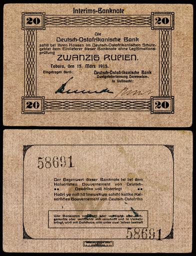 | Keywords: GEA-45a-Deutsch Ostafrikanische Bank-20 Rupien (1915).jpg German East Africa Deutsch-Ostafrikanische Bank 20 Rupien 1915 Part of an emergency issue of note during World War I 2015-01-27 12 42 39 Image by Godot13 Deutsch-Ostafrikanische Bank printed by Deutsch-Ostafrikanische Zeitung G M B H Daressalam German East Africa Institution Smithsonian National Museum of American History Use of this image should give credit to the National Numismatic Collection National Museum of American History other versions 2013030510011547 Assessments 1 German East Africa “ Provisional Banknotes of World War I 1915 “17 PD-Tanzania PD-anon-1923 self cc-by-sa-4 0 Godot13 National Numismatic Collection <br>National Museum of American History Currency <noinclude> DEFAULTSORT GEA-45a-Deutsch Ostafrikanische Bank-20 Rupien 1915 jpg 2015 User Godot13 All Images by User Godot13 NNC Banknotes scanned by User Godot13 NNC Foreign Banknotes Banknotes of German East Africa Emergency issue money Banknotes with a face value of 20 Featured Pictures English Wikipedia by User Godot13 Featured Pictures English Wikipedia numismatic by User Godot13 NNC banknote Featured Pictures English Wikipedia Military theme Godot13 |