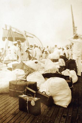| Keywords: monochrome SDASM.CATALOG: Karaberis_0181 SDASM.TITLE: Gear on deck while waiting to disembark at end of cruise SDASM.DATE: 1934 SDASM.LOCATION: Annapolis, MD SDASM.ADDITIONAL INFORMATION: On the USS Arkansas coming back from Mediterranean training SDASM.CATALOG: Karaberis_0181 SDASM.TITLE: Gear on deck while waiting to disembark at end of cruise SDASM.DATE: 1934 SDASM.LOCATION: Annapolis, MD SDASM.ADDITIONAL INFORMATION: On the USS Arkansas coming back from Mediterranean training | ||||