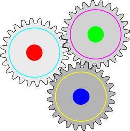 Keywords: gears cogs connected round wheels moving colorful gray center mechanism machinery industry cogwheel