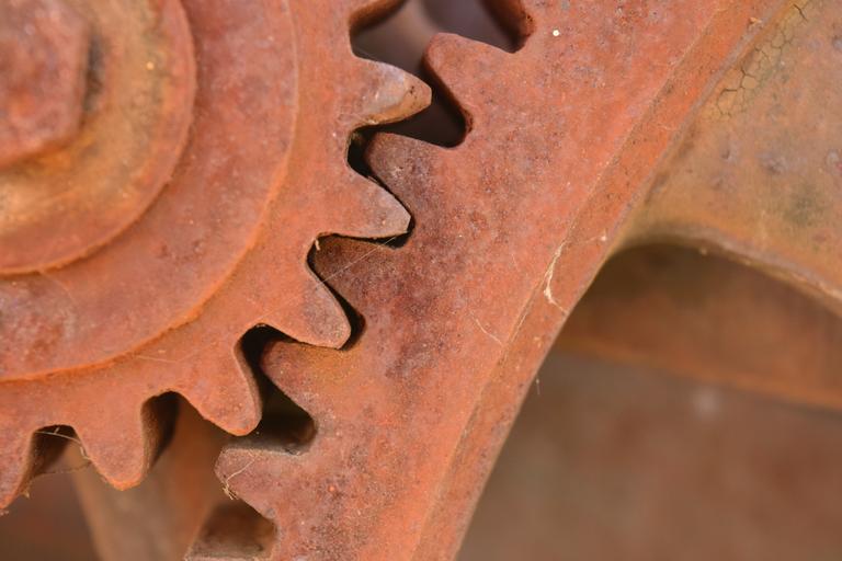 Keywords: gears metal stainless technology machine old macro transmission mechanics corrosion decorative greeting card symbolism cast iron iron teeth cooperation function interaction running smoothly