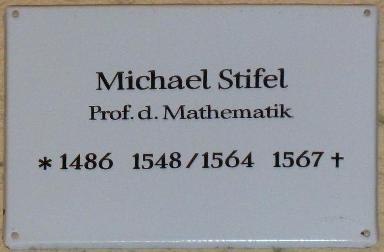 | View Original: | Gedenktafel Kollegiengasse (Jena) Michael Stifel.jpg (2328x1528) | |||