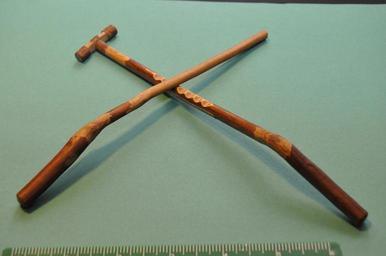 | Keywords: GeeHawWhimmyDiddle.JPG en A gee-haw whammy diddle or gee haw whimmy diddle toy with spinning propeller on a notched stick which is made to spin in either direction by stroking the notches with the second stick The propeller can be made to turn in either direction The sticks are 8 inches long This is example was made in Beech Creek North Carolina in the 1960s Own Pathh 2008-12-28 Gee-haw whammy diddle | ||||