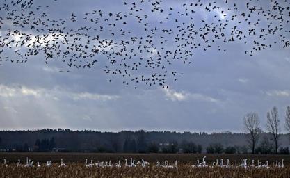 Keywords: geese flock of birds migratory bird swarm bird landscape nature mecklenburg western pomerania griese area