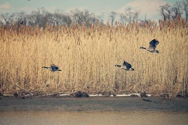 Keywords: geese flying river wildlife nature group grass fowl water snow winter migration birds flying