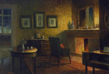 | Keywords: Gehrmann Berliner Salon.jpg Berliner Salon mit Kaminfeuer oil on canvas 62 5 x 89 cm http //www zeller de/ by 1923 Creator Paul Gehrmann 1861 “ca 1923 PD-old-70 1920s domestic interiors in painting Paul Gehrmann Rooms in art Fireplaces in art Pianos in art Paintings of Berlin Armchairs in art Mirrors in art Images from Auktionshaus Zeller 1920s interiors in art Paintings in art |