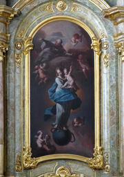 | Keywords: Geispolsheim SteMarguerite18.JPG fr Alsace Bas-Rhin Geispolsheim Eglise Sainte-Marguerite Autel secondaire Immaculée Conception XVIIIe own 2015 Ralph Hammann cc-by-sa-4 0 Artwork / Œuvre d'art / Kunstwerk oil canvas cm 300 150 et médaillon de 80 cm de diamètre Eglise Sainte-Marguerite Geispolsheim Autel secondaire PM67000092 IM67000193 object history Autel et retable par François Antoine Ketterer exécuté entre 1771 et 1772 ; tableau du martyr de saint Sébastien par Monique Danisch daté 1778 other versions Ralph Hammann PD-old accession number Photographs of Geispolsheim by Ralph Hammann Taken with Canon PowerShot SX20 IS Autel de l'Immaculée Conception Geispolsheim Baroque church paintings in Alsace Objets monuments historiques in Bas-Rhin church paintings 18th-century church paintings in Alsace Paintings of Immaculata 18th-century paintings of Immaculata Paintings of putti in France 18th-century paintings of putti |