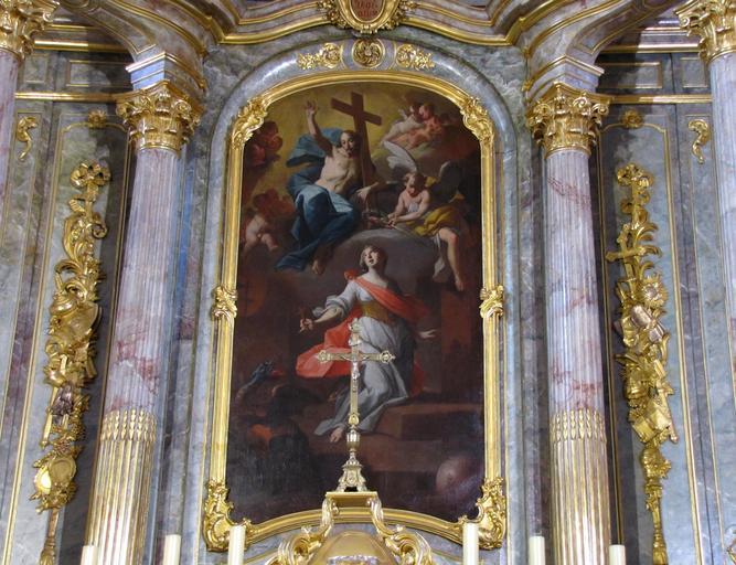 | Keywords: Geispolsheim SteMarguerite51.JPG fr Alsace Bas-Rhin Geispolsheim Eglise Sainte-Marguerite Maître-autel Sainte-Marguerite d'Antioche XVIIIe 2011-07-16 own Rh-67 cc-by-sa-3 0 Artwork / Œuvre d'art / Kunstwerk oil canvas Eglise Sainte-Marguerite Geispolsheim Maître-autel PM67000580 IM67000191 object history other versions Ralph Hammann PD-old accession number Maître-autel de l'église Sainte-Marguerite de Geispolsheim Photographs of Geispolsheim by Ralph Hammann Taken with Canon PowerShot SX20 IS Uploaded with UploadWizard 18th-century wooden reliefs in Alsace Objets monuments historiques in Bas-Rhin church paintings Baroque church paintings in Alsace 18th-century church paintings in Alsace Paintings of Saint Margaret of Antioch Paintings of putti in France 18th-century paintings of putti |