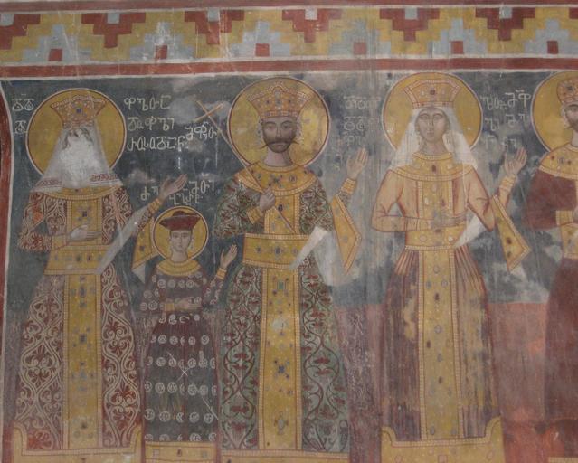 | Keywords: Gelati fresco 01.JPG en A fresco from the Gelati Monastery Georgia ka გელათის ღვთისმშ ბლის ტაძრის ჩრდილ ეთ კედლის პირველ რეგისტრზე გამ სახულია ისტ რიული პირები ქტიტ რები მეფეთმეფე დავით მე თხე აღმაშე ებელი რ მელსაც მარცხე ა ხელში უჭირავს გელათის ტაძრის მ დელი მარჯვე აში - სიგელი მის თავზე გამ სახულია ღვთის ხელი რ მელიც დავითს აკურთხებს რ გ რც ტაძრის აღმშე ებელს მის გვერდით გამ სახულია მე-16 საუკუ ის დასავლეთ საქართველ ს კათალიკ სი ევდემ ჩხეტიძე მათ გვერდით არია იმერეთის მეფე ბაგრატ მე-3 1510-1565 დედ ფალი ელე ე ბაგრატის შვილი - შემდგ მში იმერთა მეფე გი რგი მე-2 1565-1583 მისი მეუღლე - დედ ფალი რუსუდა ი და მათი შვილი - ბაგრატი რ მელიც ადრეულ ასაკში გარდაიცვალა 16th century 2008 photo http //lemill net/content/webpages/10d210d410da10d010d710d810e1-10d910e310da10e210e310e010e310da10d8-10eb10d410d210da10d410d110d8/view LeMill author Custom license marker 2013 11 24 PD-old-100 Uploaded with UploadWizard Gelati Monastery Asomtavruli frescos |