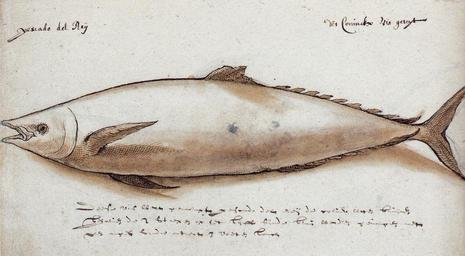 | Keywords: Gelderland1601-1603 Scomberomorus sp.jpg en A mackerel from the genus Scomberomorus In 17th century Dutch the following has been written Pescado de reij des coninckx vis geseijt Deese vis wert genaempt pescado del reij de coluer wit ende bruynen behalven die 2 strepen op het lijff sijnde blaue Werden gevangen met een angel Sijnde ontrent 3 voeten lanck nl Koningsmakreel Scomberomorus sp In oud-Nederland het volgende is geschreven Pescado de reij des coninckx vis geseijt Deese vis wert genaempt pescado del reij de coluer wit ende bruynen behalven die 2 strepen op het lijff sijnde blaue Werden gevangen met een angel Sijnde ontrent 3 voeten lanck http //proxy handle net/10648/c6878c7b-b320-4aa6-bc29-1425434f5820 Nationaal Archief Den Haag Archieven van de Compagnieƫn op Oost-Indiƫ 1 04 01 inventorynumber 135 creator Joris Joostensz Laerle Mauritius 1601 Institution Nationaal Archief accession number 1 04 01 inventory nr 135 PD-art-100 Nationaal Archief Journals of the Dutch East India Company Uploaded with UploadWizard Unidentified Scomberomorus Journal of the Gelderland 1601-1603 Joris Joostensz Laerle |