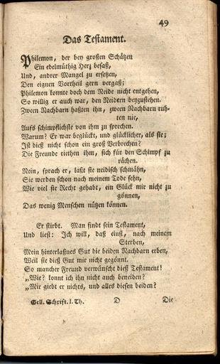 Keywords: Gellert.FE.049.jpg C F Gellerts sämmtliche Schriften Erster Theil Leipzig 1769 PD-old Ex Bibliotheca Gymnasii Altonani Hamburg Gellert Schriften 1