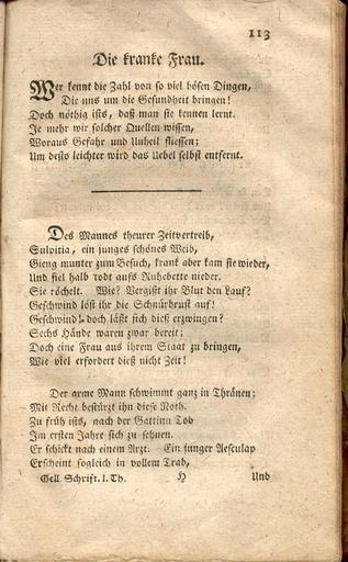 Keywords: Gellert.FE.113.jpg C F Gellerts sämmtliche Schriften Erster Theil Leipzig 1769 PD-old Ex Bibliotheca Gymnasii Altonani Hamburg