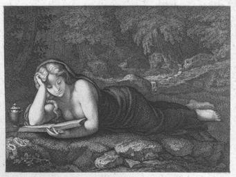 | Keywords: Gemäldegalerie Alte Meister (Dresden) Galeriewerk Bürkner 06.jpg Artwork Creator Hugo Bürkner nach Creator Correggio Die büßende Magdalena ~ 1855 Radierung Etching vermisst Gal -Nr 154 missing gallery-nr 154 Institution Gemäldegalerie Alte Meister Dresden Beschreibung aus Karl Woermanns Galeriekatalog 1887 Magdalena Unter dichtbelaubten Felsen liegt Magdalena halb aufgerichtet mit dem Rücken nach oben stützt den Kopf auf den rechten Arm und dessen Ellenbogen auf das Buch welches sie mit der linken Hand vor sich aufgeschlagen hält Sie blickt eifrig lesend hinab Links neben ihrem Kopfe steht ihr Salbgefäss Ihre Brust ist nackt wie die Füsse Ein blauer Mantel umfliesst ihren Unterkörper ihren Rücken und ihren Hinterkopf Ihr blondes Haar fällt auf ihre Schultern herab Sie ist vorn hell beleuchtet <small>Kupfer; h 0 29 m; br 0 39½ m</small> Die vorzüglichsten Bilder der Dresdner Gemälde-Gallerie Original-Radierungen von Prof H Bürkner u A Dresden Verlagsbuchhandlung von Rudolf Kunze ohne Jahr self scanned from own book PD-old-100 Other versions Gemäldegalerie Alte Meister Dresden Galeriewerk Bürkner Religious paintings by Correggio Paintings formerly in the Gemäldegalerie Alte Meister Dresden |