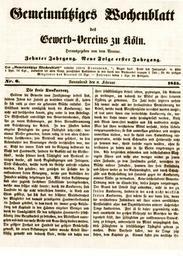 Keywords: GemeinnützigesWochenblatt.jpg Titelblatt Gemeinnütziges Wochenblatt des Gewerbevereins zu Köln 1845 own scan 2007-08-29 Machahn 15 11 29 August 2007 UTC PD-old Periodicals of Germany Gemeinnütziges Wochenblatt