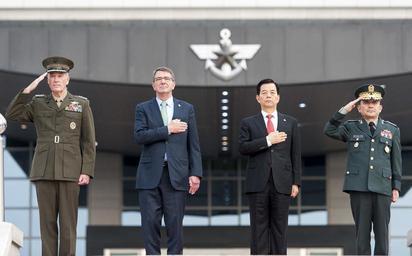 | Keywords: Gen. Dunford meets with Korean leaders 151102-D-PB383-0084.jpg en U S Marine Corps Gen Joseph F Dunford Jr chairman of the Joint Chiefs of Staff delivers a hand salute alongside U S Secretary of Defense Ash Carter Republic of Korea Minister of Defense Minkoo Han and Republic of Korea chairman of the Joint Chiefs of Staff Army Gen Lee Soon-Jin during an honor guard ceremony at the Joint Chiefs of Staff headquarters in Daejeon Republic of Korea Nov 2 2015 DoD photo by Navy Petty Officer 2nd Class Dominique A Pineiro 2015-11-02 Petty Officer 2nd Class Dominique Pineiro https //www dvidshub net/image/2261209 151102-D-PB383-0084 2015-11-02 04 33 27 KR 4 PD-USGov Joseph F Dunford Jr Ashton Carter Images from DoD uploaded by Fæ |