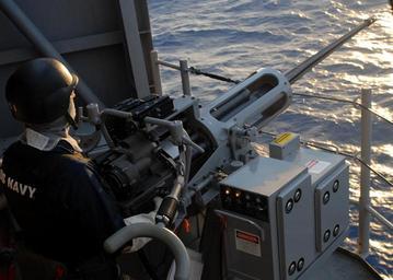 | Keywords: General quarters drill aboard USS Peleliu DVIDS101162.jpg en Petty Officer 2nd Class Adrian Lopez gunner's mate mans a 25mm gun aboard the amphibious assault ship USS Peleliu during a general quarters drill Peleliu is in the Pacific Ocean on a scheduled deployment 2008-05-08 Petty Officer 2nd Class Sarah Bitter https //www dvidshub net/image/101162 080508-N-+++++-013 2008-07-08 04 49 USPACOM AT SEA PD-USGov-Military-Navy USS Peleliu LHA-5 Images from DoD uploaded by Fæ | ||||