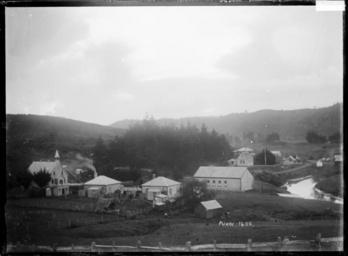| Keywords: blackandwhite monochrome photo border outdoor black and white View of the township and river looking across paddocks to the rear of houses. On the far left is the church. In the middle foreground is the hall, and far away, and partially obscured by the school, is the Puhoi Hotel. Schollum & Titford's general store is on the main street near the river (on the right). Photograph taken 1900-1930 by William Archer Price. Inscriptions: Inscribed - Photographer's title on negative -bottom right: Puhoi. 1400. Quantity: 1 b&w original negative(s). Physical Description: Dry plate glass negative 4.5 x 6.5 inches General view of Puhoi township. Price, William Archer, 1866-1948 :Collection of post card negatives. Ref: 1/2-000149-G. Alexander Turnbull Library, Wellington, New Zealand. natlib.govt.nz/records/22918106 View of the township and river looking across paddocks to the rear of houses. On the far left is the church. In the middle foreground is the hall, and far away, and partially obscured by the school, is the Puhoi Hotel. Schollum & Titford's general store is on the main street near the river (on the right). Photograph taken 1900-1930 by William Archer Price. Inscriptions: Inscribed - Photographer's title on negative -bottom right: Puhoi. 1400. Quantity: 1 b&w original negative(s). Physical Description: Dry plate glass negative 4.5 x 6.5 inches General view of Puhoi township. Price, William Archer, 1866-1948 :Collection of post card negatives. Ref: 1/2-000149-G. Alexander Turnbull Library, Wellington, New Zealand. natlib.govt.nz/records/22918106 |