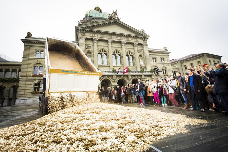 | Keywords: grundeinkommen bedingungsloses grundeinkommen bedingungslosesgrundeinkommen generation grundeinkommen generationgrundeinkommen volksinitiative bundesplatz bern schweiz basic income basicincome outdoor FOTO: STEFAN BOHRER ORT: BERN 04.10.2013: Zur erfolgreichen Einreichung der “Eidgenössischen Volksinitiative für ein bedingungsloses Grundeinkommen” schüttet die Generation Grundeinkommen am 4. Oktober 2013 um 10.15 Uhr 8 Millionen „Fünferli“ auf den Bundesplatz. Für jede Person in der Schweiz eins. Das sind 15 Tonnen. Welche Rolle spielt das Geld im Leben? Ist das Geld der Anreiz zum Arbeiten? Was würde Sie arbeiten, wenn für Ihr Einkommen gesorgt wäre? Wie hoch soll das Grundeinkommen sein? Was heisst „menschenwürdig leben“? Und welches ist die beste Art der Finanzierung? Was wird das Grundeinkommen bewirken? Beim Einzelnen? In der Gesellschaft und Wirtschaft? Arbeitet dann niemand mehr? Oder erfolgt ein Entwicklungs- und Innovationsschub? Das Geld ist da. Die Frage ist: Was tun wir? Die Entrollung der 8 Millionen Fünfrappenstücke fand im Safe der ehemaligen Schweizerischen Volksbank in Basel statt. In 10 Tagen haben 75 Menschen innert 400 Stunden die 8 Millionen “Fünferli” aus ihren 160’000 Papierrollen befreit. Am 4. Oktober 2013 lag das Geld für alle sichtbar und begehbar ausgebreitet auf dem Bundesplatz in Bern. Vom 5. bis 14. Oktober war die "Geldberg-Performance“ der Generation Grundeinkommen im Kaffeehaus “unternehmen mitte” in Basel zu sehen. Mehr Info: www.generation-grundeinkommen.ch www.grundeinkommen.ch www.bedingungslos.ch Kontakt: generation@grundeinkommen.ch FOTO: STEFAN BOHRER ORT: BERN 04.10.2013: Zur erfolgreichen Einreichung der “Eidgenössischen Volksinitiative für ein bedingungsloses Grundeinkommen” schüttet die Generation Grundeinkommen am 4. Oktober 2013 um 10.15 Uhr 8 Millionen „Fünferli“ auf den Bundesplatz. Für jede Person in der Schweiz eins. Das sind 15 Tonnen. Welche Rolle spielt das Geld im Leben? Ist das Geld der Anreiz zum Arbeiten? Was würde Sie arbeiten, wenn für Ihr Einkommen gesorgt wäre? Wie hoch soll das Grundeinkommen sein? Was heisst „menschenwürdig leben“? Und welches ist die beste Art der Finanzierung? Was wird das Grundeinkommen bewirken? Beim Einzelnen? In der Gesellschaft und Wirtschaft? Arbeitet dann niemand mehr? Oder erfolgt ein Entwicklungs- und Innovationsschub? Das Geld ist da. Die Frage ist: Was tun wir? Die Entrollung der 8 Millionen Fünfrappenstücke fand im Safe der ehemaligen Schweizerischen Volksbank in Basel statt. In 10 Tagen haben 75 Menschen innert 400 Stunden die 8 Millionen “Fünferli” aus ihren 160’000 Papierrollen befreit. Am 4. Oktober 2013 lag das Geld für alle sichtbar und begehbar ausgebreitet auf dem Bundesplatz in Bern. Vom 5. bis 14. Oktober war die "Geldberg-Performance“ der Generation Grundeinkommen im Kaffeehaus “unternehmen mitte” in Basel zu sehen. Mehr Info: www.generation-grundeinkommen.ch www.grundeinkommen.ch www.bedingungslos.ch Kontakt: generation@grundeinkommen.ch |
