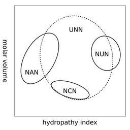 MAKE A MEME View Large Image Genetic Code Bias 2.svg en Grouping of codons by amino acid residue molar volume and hydropathy ja アミノ酸残基の分子量と疎水親水 でグループ分けしたコドン Own work by uploader based on the arrangement of a ...