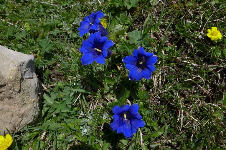 Keywords: gentian high mountains blue yellow flowers close rarely