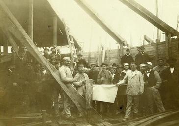 | Keywords: Gentoftes vandtårn, rejsegilde.jpg da Rejsegilde på Gentoftes vandtårn Billedet er fra Lokalhistorisk Arkiv for Gentofte Kommune på danskebilleder dk Fotograf Collin A Th ; format 16x23 Alfred Theodor Collin 1849-1922 Lyngby 1905 PD-old Topping out Det gamle vandtårn Gentofte Danskebilleder dk 1905 in Denmark 1905 photographs Vintage photographs from Gentofte Kommune |