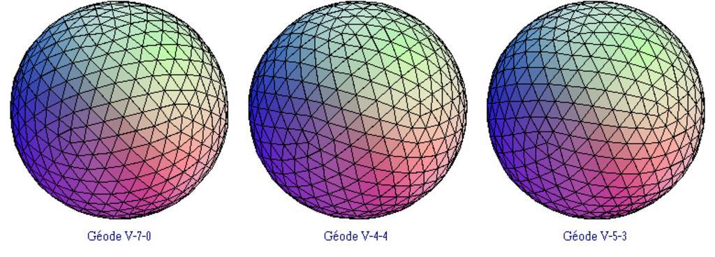 Keywords: Géodes V.PNG Trois exemples de géodes de paramètre V in english geodesic domes 2005-09-14 own assumed Papy77 Theory of the dome Spheres