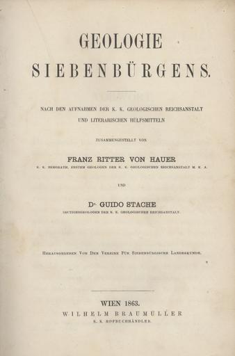 | Keywords: Geology transylvania hauer stache.jpg en title page Geology of Transsylvania Hauer Stache 1863 de Titelblatt Geologie Siebenbürgens Hauer Stache 1863 Eigenes Werk own work/own scan Lysippos 2008-08-26 Geology books book covers single pages etc |