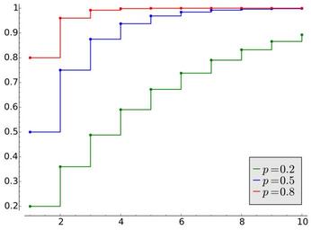 | Keywords: Geometric distribution CDF.svg en Plot of geometric distribution CDF for values of p in 0 2; 0 5; 0 8 Source code Sagemath that generated the image is available at http //pastebin com/U2YEtstY fr Courbe de la fonction de répartition de la loi géométrique pour des valeurs de p dans 0 2; 0 5; 0 8 Le code source en Sage utilisé pour générer l'image est disponible à l'adresse suivante http //pastebin com/U2YEtstY 2016-01-26 own Architektormaran other versions cc-zero Probability distributions |