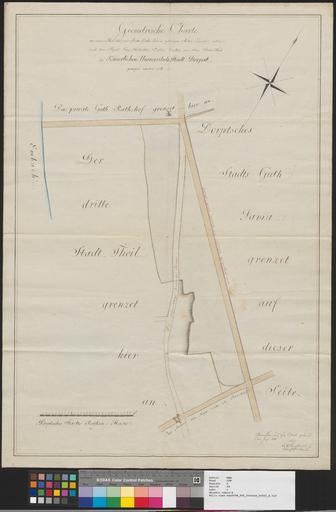 | Keywords: Geometrische Charte von einen Theil des zum Stadt Guthe Jama gehörigen Acker Landes, welches nach dem Project Eines Hochedlen Rathes künftig zum 3-tem Stadt Theil der Kaiserlischen Universitaets-Stadt Dorpat gezogen worden soll.jpg en A map from Estonian National Archives with Reference code EAA 298 2 44 Sheet 1 et Kaart Eesti Rahvusarhiivist Lähtekoodiga EAA 298 2 44 leht 1 1813 http //www ra ee/kaardid/index php/et/map/view id 26048 Conrad Martin Sengbusch Information_field de type City plan sheet Single sheet map reproduction Printed Information_field de Geometrische Charte von einen Theil des zum Stadt Guthe Jama gehörigen Acker Landes welches nach dem Project Eines Hochedlen Rathes künftig zum 3-tem Stadt Theil der Kaiserlischen Universitaets-Stadt Dorpat gezogen worden soll scale 1 1500 Information_field EAA 298 2 44 Sheet 1 Information_field cm 76 54 Information_field print paper Custom license marker 2014 09 02 PD-old-100 Uploaded with UploadWizard Images from the Estonian Historical Archives Old maps of Tartu Kreis Dorpat Tartu in the 19th century Conrad Martin Sengbusch |