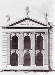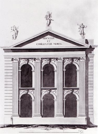 | Keywords: Georg Christian Unger - Fassadenentwurf fuer das Franzoesische Komoedienhaus Berlin, 1774.jpg de Fassadenentwurf für das Französische Komödienhaus auf dem Gendarmenmarkt in Berlin ca 1774 von Georg Christian Unger en Design for the facade of the French Comedy House on Gendarmenmarkt in Berlin ca 1774 by Georg Christian Unger scan from book Ruth Freydank Theater in Berlin Berlin 1988 p 205 Georg Christian Unger 1743-1799 ~ 1774 Französisches Komödienhaus Berlin Georg Christian Unger PD-old |