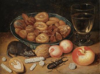 | Keywords: Georg Flegel - Stillleben mit Kastanien und Haselnüssen in einer Porzellanschüssel etc.jpg workshop of Stillleben mit Kastanien und Haselnüssen in einer Porzellanschüssel einem Römer einem Apfel Aprikosen einem Käfer und einer Maus Oil copper cm 18 5 25 accession number object history credit line provenance In the collection of the present owner's parents; Thence by descent Reference http //www sothebys com/de/ecat pdf L07032 html/f/132/L07032-132 pdf Sotheby's http //www sothebys com/de/catalogues/ecatalogue html/2007/old-master-paintings-day-l07032 /r /de/ecat fhtml L07032 html+r m /de/ecat lot L07032 html/132/ Sotheby's PD-old-100 17th-century still life paintings by Georg Flegel Still life paintings of fruits Still life paintings of animals Images from Sotheby's Porcelain tableware in art Hazelnuts in art Chestnuts in art Beetles in art Apples in art Apricots in art Mice in art |