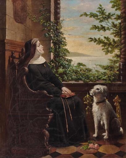 Keywords: Georg Kugler Nonne.jpg Nonne mit Hund auf einer Loggia G Kugler lower left signature oil on canvas 69 x 56 cm http //www dorotheum com Dorotheum by 1916 Georg Kugler 1840-1916 Images from Dorotheum Georg Kugler Nuns in art People with dogs in art PD-old-auto-1923 1916