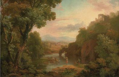 | Keywords: George Barret - A classical landscape with fishermen and a washerwoman, a hilltop villa and mountains beyond.jpg George Barret Sr George Barret Sr other date ca 1728/32 -1784 oil canvas cm 88 9 111 8 object history Presumably acquired by a member of the Kirkpatrick family in the 19th Century <br/>Mr and Mrs Bruce Bedin; Christie's Donacomper Celbridge Co Kildare 6 July 1977 lot 494 <br/>Anonymous sale; Sotheby's London 20 November 1978 lot 320 credit line accession number christies online 5391435 7888 249 London 8 December 2010 PD-old-100 George Barret Sr 18th-century landscape paintings |