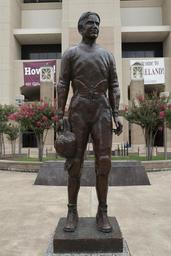 | Keywords: George E. "Pat" Foley's statue, "The Twelfth Man," on the Texas A&M University campus in College Station, Texas LCCN2014633927.tif 1 photograph digital tiff file color Notes Title date and keywords based on information provided by the photographer ; A gift of the Class of 1980 this sculpture portrays E King Gill an A M student and football player from the 1920s In 1922 during a post-season game Gill was called from the stands to help the football team which was rapidly losing players due to injuries Although he never entered the game by the time it was over he was the only player standing along the sidelines Since that time Aggies as the fans and players are called have stood at football games to symbolize their support for the team It is felt that the crowd's energy has the effect of supplying an additional player to the 11 men competing on the field ; Forms part of Lyda Hill Texas Collection of Photographs in Carol M Highsmith's America Project in the Carol M Highsmith Archive ; Gift; The Lyda Hill Foundation; 2014; DLC/PP-2014 054 ; Credit line The Lyda Hill Texas Collection of Photographs in Carol M Highsmith's America Project Library of Congress Prints and Photographs Division 2014 Creator Carol M Highsmith Library of Congress Catalog http //lccn loc gov/2014633927 Image download https //cdn loc gov/master/pnp/highsm/29700/29727a tif Original url http //hdl loc gov/loc pnp/highsm 29727 No known restrictions on publication LOC-image highsm 29727 PD-Highsmith Images uploaded by Fæ Lyda Hill Texas Collection of Photographs in Carol M Highsmith's America Project in the Carol M Highsmith Archive The Lyda Hill Texas Collection of Photographs in Carol M Highsmith's America Project Library of Congress Prints and Photographs Division Photographs by Carol M Highsmith |