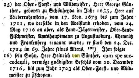 | Keywords: George Günther aus Schönheide und Sohn bei Simon Nachrichten von Zschopau 1821.jpg Ernst Friedrich Wilhelm Simon Kurze historisch-geographisch-topographische Nachrichten von den vornehmsten Denckwürdigkeiten der Berg-Stadt Zschopau Dresden 1821 S 81 https //books google de/books id OoAAAAAAcAAJ pg PA81 Digitalisat berichtet über den in Schönheide geborenen George Günther und dessen Sohn Scan of a book of 1821 1821 author gemeinfrei PD-old-70-1923 George Günther | ||||