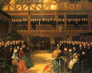 | Keywords: George H. Bernasconi - Meeting of the City of Birmingham Pharmaceuticals, 1888 - oil.jpg en Hammer Price with Buyer's Premium 4 025 GBP 1998 Meeting of the city of birmingham pharmaceuticals 1888 signed and dated l r Geo H Bernasconi/1888 oil on canvas unframed 120 5 by 151 cm 27 1/2 by 59 1/2 in The present work shows Sir Thomas Barclay and members of Southalls and William Spencer Sons and includes may exact portraits of the firm's directors and their families Sir Thomas Barclay Kt JP leans against the depiction of 'Ye Apothecary's Laboratorie - Southalls' in the centre He was the prime mover for piping fresh water from the Welsh mountains to Birmingham and thereby virtually eradicating cholera and typhoid from that city where epidemics had raged in the 19th century He was also a Liberal councillor for Birmingham The Lord Mayor of Birmingham and many city fathers stand on the balcony in the background George H Bernasconi was a member of a Birmingham family of artists and exhibited in both London and Birmingham Photograph of original George Henry Bernasconi ~ 1888 PD-Old George Henry Bernasconi 1888 paintings in the United Kingdom Birmingham Pharmaceutical companies of the United Kingdom |