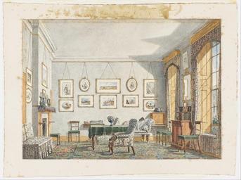 | Keywords: George Pyne - George James Drummond's Room at Oxford, 1853 - Google Art Project (6836651).jpg 1800 1884 George 6836649 Pyne 1800 - 1884 /collection/cooper-hewitt-national-design-museum/artwork/george-james-drummonds-room-at-oxford-1853-george-pyne/6836651/ 229954 George Pyne /artist/george-pyne/12692403/ 12692403 /collection/cooper-hewitt-national-design-museum/ Cooper-Hewitt National Design Museum 3644669 http //www cooperhewitt org/ 3/12/2012 5 38 07 PM /collection/cooper-hewitt-national-design-museum/artwork/george-james-drummonds-room-at-oxford-1853-george-pyne/6836651/ 1853 1853 Brush and watercolor gouache graphite on white wove paper Eugene V Thaw Collection; Sotheby's London July 10 1997 lot 112 label with Thaw file ; James Henry Royds 1908-1997 grandson of George James Drummond then by descent Label from back of frame Martinspeed Limited ref 3533 6836651 False 1853 3/25/2012 1 07 12 PM 2007-27-54 http //collection cooperhewitt org/view/objects/asitem/id/229954 Thaw Collection Drawing 1850 1860 1853 False 1 34031413612565 Object george-james-drummonds-room-at-oxford-1853-george-pyne George James Drummond's Room at Oxford 1853 g Gail S Davidson et al House Proud Nineteenth-Century Watercolor Interiors from the Thaw Collection New York Cooper-Hewitt National Design Museum Smithsonian Institution 2008 51 fig 32; 119 pl 54 Charlotte Gere Nineteenth-Century Decoration The Art of the Interior New York Harry N Abrams In 1989 298-299 illus N B The passages and illustrations cited refer to related works attributed to George Pyne Frame H x W x D 39 7 x 50 2 x 2 5 cm 15 5/8 x 19 3/4 x 1 in Sheet 21 5 x 30 8 cm 8 7/16 x 12 1/8 in New York NY - Cooper-Hewitt National Design Museum Smithsonian Institution House Proud Nineteenth-Century Watercolor Interiors from the Thaw Collection August 12 2008-January 25 2009 Brush and watercolor gouache graphite on white wove paper Eugene V Thaw Collection; Sotheby's London July 10 1997 lot 112 label with Thaw file ; James Henry Royds 1908-1997 grandson of George James Drummond then by descent Label from back of frame Martinspeed Limited ref 3533 special url_id UwEQxfU8YqFodA PD-old-100-1923 1884 Google Art Project works by George Pyne Watercolors of building interiors in the Cooper “Hewitt Smithsonian Design Museum Google Art Project works in Cooper-Hewitt Smithsonian Design Museum 1850s interiors in art George James Drummond |