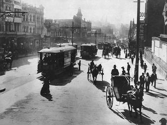 | Keywords: archives state records nsw staterecordsnsw newsouthwales blackandwhite sydney george street georgestreet streets vehicles trams horse and cart horseandcart buildings shops people pedestrians brickfield hill monochrome road outdoor snow black and white View of George Street, Sydney Dated: c. 1/01/1900 Digital ID: 17420_a014_a0140001203r Rights: www.records.nsw.gov.au/about-us/rights-and-permissions We'd love to hear from you if you use our photos. Many other photos in our collection are available to view and browse on our website using Photo Investigator. View of George Street, Sydney Dated: c. 1/01/1900 Digital ID: 17420_a014_a0140001203r Rights: www.records.nsw.gov.au/about-us/rights-and-permissions We'd love to hear from you if you use our photos. Many other photos in our collection are available to view and browse on our website using Photo Investigator. |