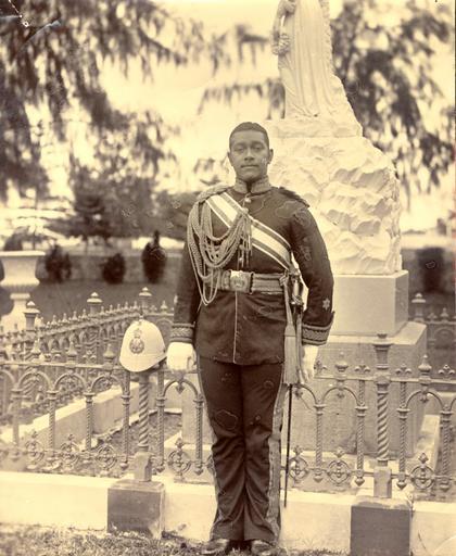| Keywords: George Tupou II in uniform (British Museum).jpg en Portrait of King George Tupou II King of Tonga Photograph black and white ; King George Jabou II former King of Tonga; wearing costume and standing at the side of a monument his helmet is resting on the metal rails which surrounds the monument; Tonga http //www britishmuseum org/research/search_the_collection_database/search_object_details aspx objectid 1595840 partid 1 searchText Tupou fromADBC ad toADBC ad numpages 10 orig 2fresearch 2fsearch_the_collection_database aspx currentPage 1 British Museum circa 1885 1900 author PD-old George Tupou II |