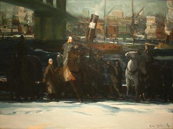 | Keywords: George Wesley Bellows - Snow Dumpers (1911).jpg Artwork creator George Wesley Bellows Depicts work crews dumping shoveled snow from horse-drawn wagons into the East River near the base of the Brooklyn Bridge 1911 Oil canvas 36 125 48 125 Columbus Museum of Art accession number 1941 001 object history credit line Museum Purchase Howald Fund Geo Bellows ~ lower right signature http //www hvallison com/WorkDetail aspx w 317 George Bellows ™ Catalogue RaisonnĂ© Record Book A pp127 Columbus Museum of Art 1988 The American Collections p 214 Digital photo by User Postdlf PD-old-auto-1923 1925 DEFAULTSORT Bellows George Snow Dumpers 1911 Paintings by George Wesley Bellows Paintings in the Columbus Museum of Art Snow in Manhattan New York City 1911 in New York City Paintings of New York City Paintings of the Brooklyn Bridge 1911 paintings Paintings in the Columbus Museum of Art Photos by Postdlf Snow removal in the United States Paintings of people with snow |
