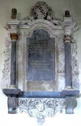 | Keywords: GeorgeCary Died1685 ClovellyChurch Devon.PNG en Mural monument of Sir George Cary 1654-1685 lord of the manor of Clovelly Devon MP for Okehampton All Saints Church Clovelly Inscribed as follows In memory of S<sup>r</sup> George Cary K<sup>t</sup> sonne and heire of D<sup>r</sup> George Cary Dean of Exon who dyed the 6<sup>th</sup> day of Jan<sup>ry</sup> in the 31 year of his age An<sup>o</sup> Dom 1684/5 Ne amemines vitam quam si in bonis accenseret numen justis non raperet Do not life God would not seize away the Just if he had not counted them amongst the Good own photo Lobsterthermidor <span class signature-talk ></span> 09 39 13 February 2015 UTC 2014 All Saints Church Clovelly interior Cary arms Wall mounted church monuments in Devon |