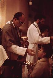| Keywords: GeorgeHClements1973.jpg Rev George H Clements giving Holy Communion Chicago 1973 Original caption Holy Angel catholic church on Chicago's South side 1973 Photograph by John H White for Series DOCUMERICA The Environmental Protection Agency's Program to Photographically Document Subjects of Environmental Concern compiled 1972 - 1977 NARA-image 556236 Converted from gif to jpg and border cropped before upload 1973-10 John H White Unrestricted PD-USGov 1973 in Chicago Clergy from the United States Clements Churches in Chicago Eucharist African American clergy and religious figures Clements John H White DOCUMERICA Holy Angels churches in the United States Communion |