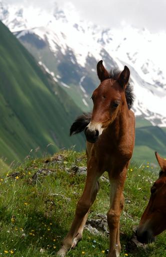 Keywords: georgia caucasus offspring the horse animal nature mountains