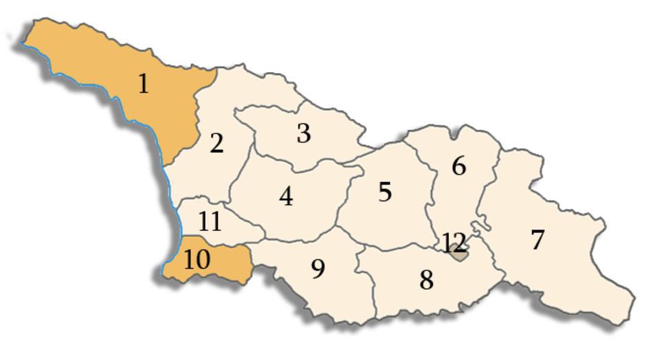 Keywords: Georgia numbered regions.png რეზიუმე en Numbered map of Georgian regions ka საქართველ ს რეგი თა მრები Georgia map in wikicommons Temuri rajavi 2-08-2009 cc-by-sa-3 0 GFDL File Georgia areas png Maps of Subdivisions of Georgia Maps numbering